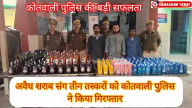 बिहार ले जा रहे भारी मात्रा में अवैध शराब को कोतवाली पुलिस ने किया बरामद, तीन तस्कर गिरफ्तार ।