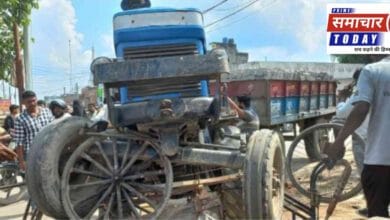 मनकापुर रेलवे क्रॉसिंग के पास बाइक, साइकिल और ठेले पर चढ़ा ट्रैक्टर