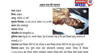 September 16, 20240ट्रेन से कटकर अज्ञात युवक की मौत, पुलिस ने शव को पोस्टमार्टम के लिए भेजा।