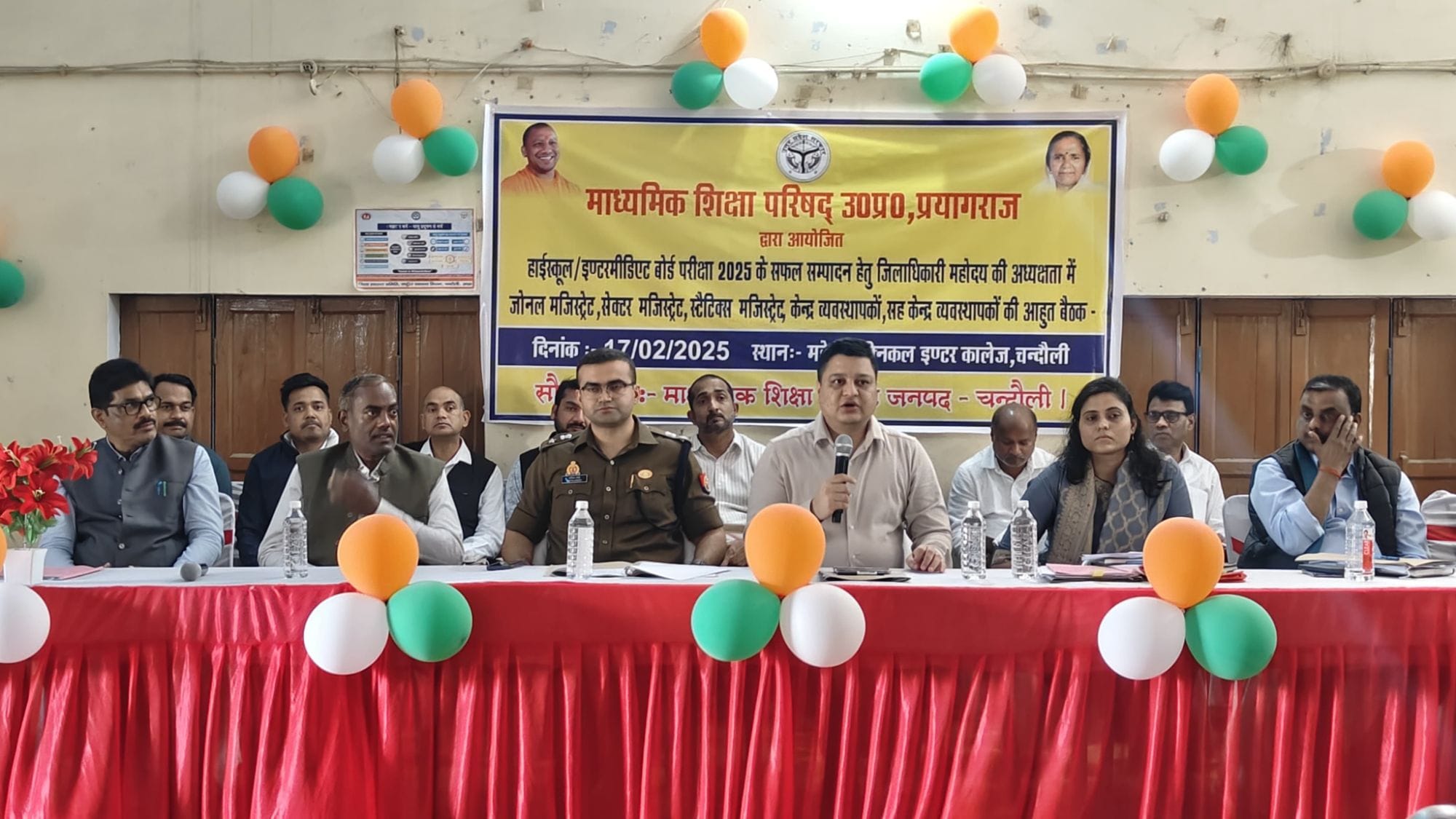 चंदौली प्राइम समाचार टुडे माध्यमिक शिक्षा परिषद उ0प्र0 प्रयागराज द्वारा आयोजित वर्ष 2025 की हाईस्कूल/इण्टरमीडिएट की परीक्षाओं में नकल की रोकथाम तथा परीक्षाएं शान्तिपूर्ण ढंग से सम्पन्न कराये जाने हेतु जोनल मजिस्ट्रेट, सेक्टर मजिस्ट्रेट एवं स्टैटिक मजिस्ट्रेट व केन्द्रव्यवस्थापकों के साथ बैठक जिलाधिकारी निखिल टी फुंडे व पुलिस अधीक्षक आदित्य लांघे की अध्यक्षता में महेंद्र टेक्निकल ई का के सभागार में सम्पन्न हुई। जिलाधिकारी निखिल टी फुंडे ने बैठक के दौरान बताया कि उ० प्र० माध्यमिक शिक्षा परिषद, प्रयागराज द्वारा आयोजित हाई स्कूल एवं इण्टरमीडिएट की बोर्ड परीक्षाएं दिनांक 24 फरवरी, 2025 से 12