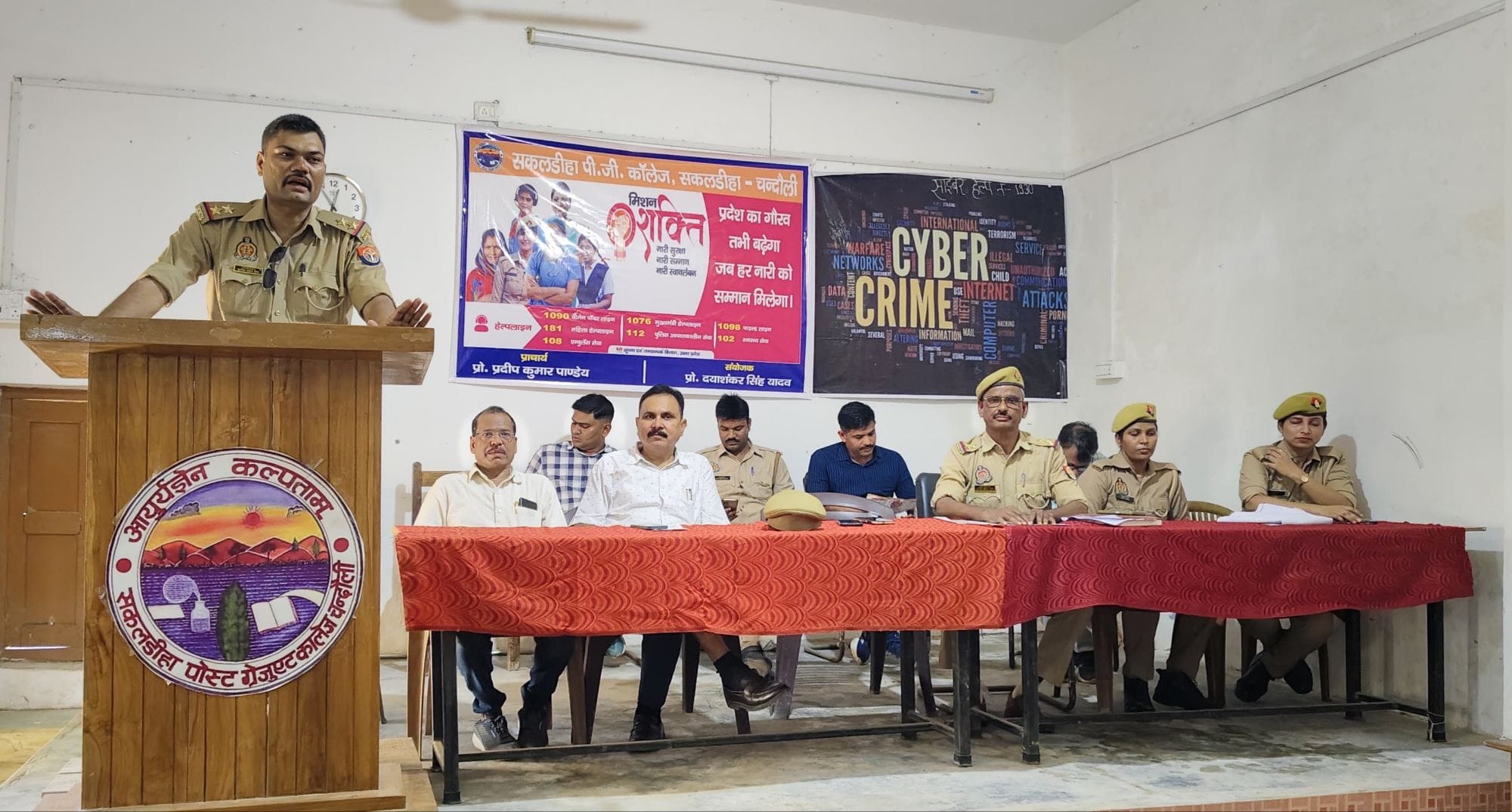 सकलडीहा गुरुवार को स्थानीय सकलडीहा पीजी कॉलेज में मिशन शक्ति 5.0 कार्यक्रम एवं साइबर जागरूकता संगोष्ठी का आयोजन किया गया कार्यक्रम का शुभारंभ महाविद्यालय के प्राचार्य प्रो. डा० प्रदीप कुमार पांडेय एवं प्रभारी साइबर क्राइम टीम द्वारा माँ सरस्वती की प्रतिमा पर माल्यार्पण एवं दीप प्रज्वलन के साथ प्रारंभ हुआ। जागरूकता कार्यक्रम के दौरान प्राचार्य प्रो. पांडेय ने कार्यक्रम में उपस्थित छात्र-छात्राओं को जागरुक करते हुए बताया कि