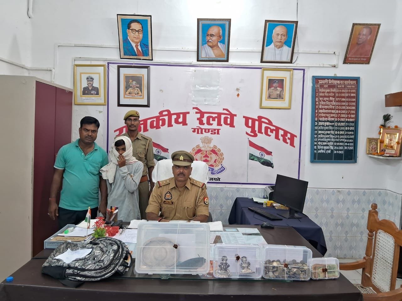 जीआरपी पुलिस अधीक्षक गोरखपुर अनुभाग संदीप कुमार मीणा ने बताया है की गोण्डा जीआरपी पुलिस ने गोण्डा रेलवे-स्टेशन से एक बाल अपचारी को गोरखपुर रेलवे कालोनी के पास एक मन्दिर से चुरायी गयी मूर्तियो के साथ गिरफ्तार किया है जिसका मुकदमा गोरखपुर रेलवे कैण्ट थाने मे पहले से दर्ज था गिरफ्तार अभियुक्त को बाल अपचारी की धाराओ मे विधिक कार्रवाई की जा रही है।