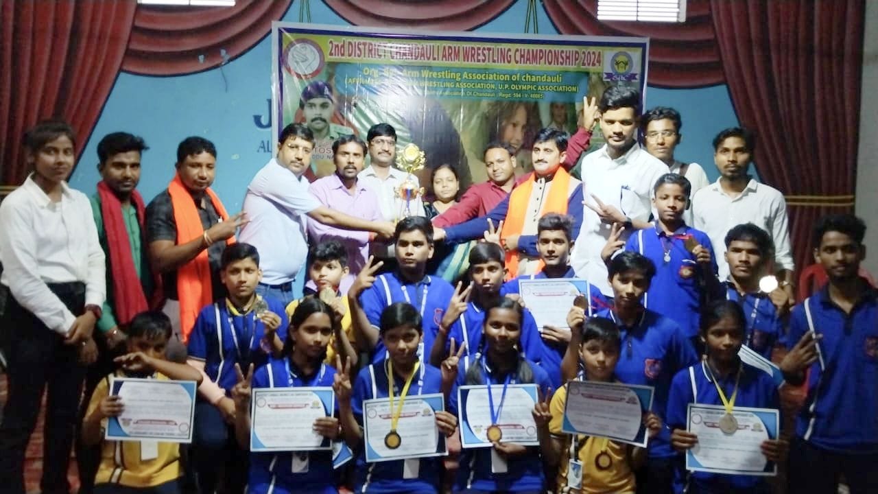 ऑफिशियल को भूमिका निभाई।विजेता टीम को विशिष्ट अतिथि के रूप में उपस्थित धनंजय सिंह, विद्यालय के चेयरमैन कृष्ण मोहन गुप्ता,चंदौली आर्म रेसलिंग संघ के सचिव कुमार नंदजी ने विजेता टीम को ट्रॉफी प्रदान किया। इस दौरान विद्यालय के प्रिंसिपल अनिल मौर्य,वाइस प्रिंसिपल प्रकाश मंडल, तापसी मंडल इत्यादि शिक्षक उपस्थित रहे जबकि राकेश तिवारी,मनीष सिंह, संजय चौहान,राजीव शर्मा,राजेश गुप्ता अतिथि के रूप में उपस्थित हुए।