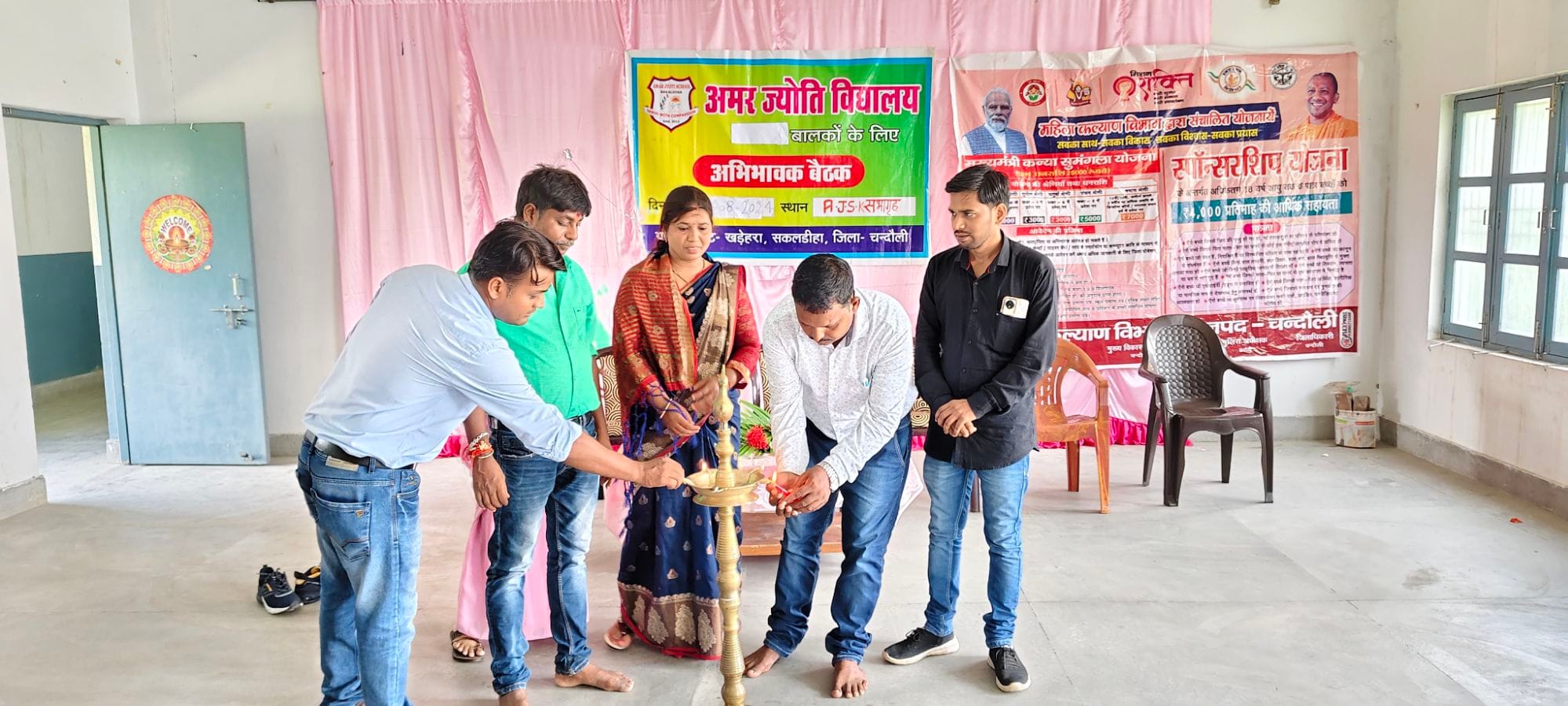 सकलडीहा स्थानीय विकासखंड खडेहरा स्थित अमर ज्योति संस्था में शनिवार को अभिभावक मीटिंग के द्वारा अभिभावक कानूनी जागरूकता का आयोजन किया गया। कार्यक्रम के मुख्य अतिथि जिला चाइल्डलाइन कोऑर्डिनेटर इंद्रजीत सिंह, एव सुपरवाइजर संध्या यादव एवं संस्था प्रधानाचार्या रेखा सिस्टर द्वारा दीप प्रज्वलित कर कार्यक्रम का शुभारंभ किया