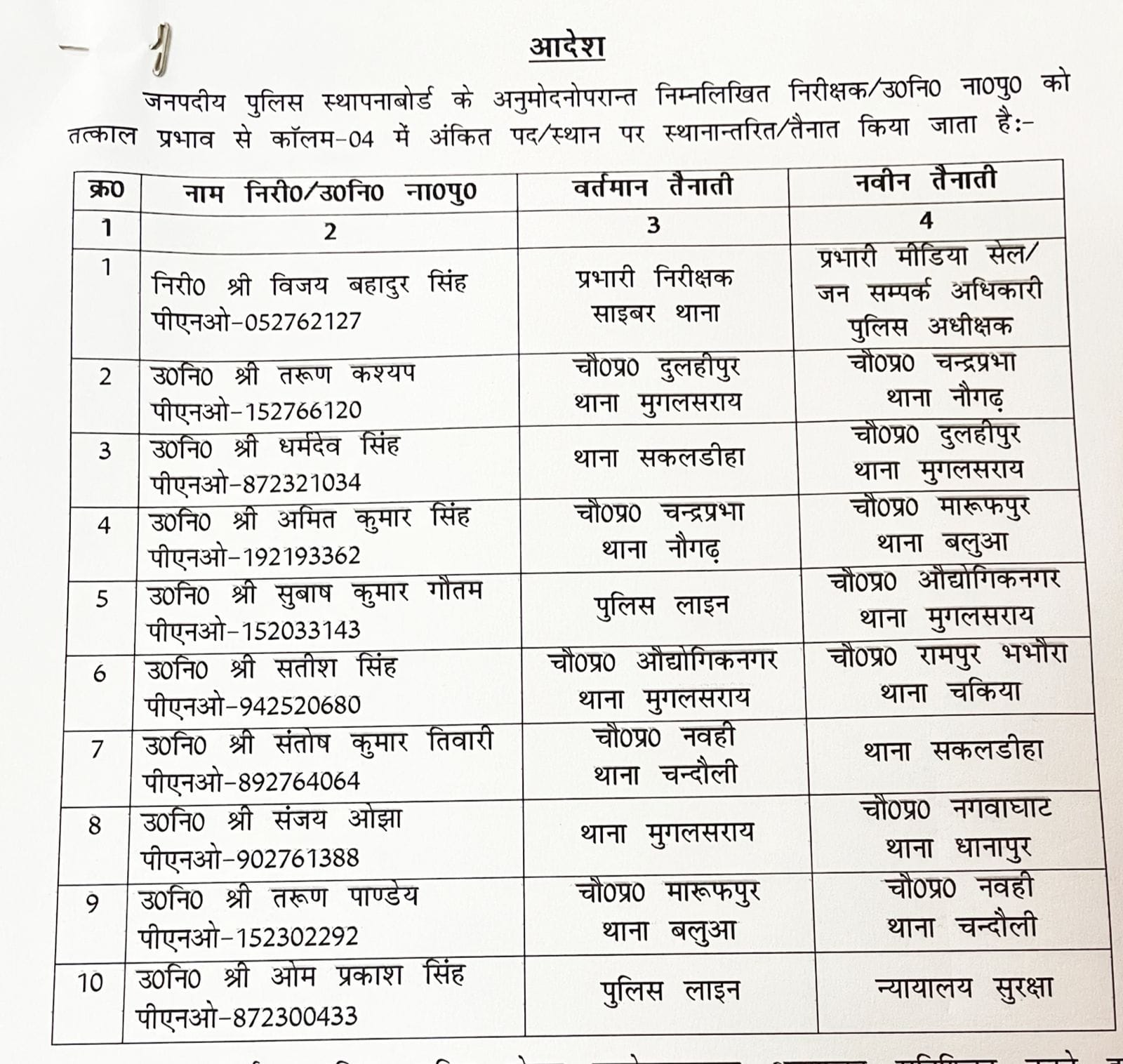 निष्पक्ष एवं पारदर्शी क्रियान्वयन को लेकर एक निरीक्षक सहित नौ उपनिरीक्षकों के कार्यक्षेत्र में पुलिस अधीक्षक ने फेर बदल करते हुए नवीन तैनाती दी है