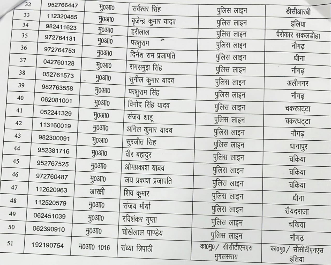 चंदौली प्राइम समाचार टुडे जनपद में कानून व्यवस्था रखना को लेकर पुलिस अधीक्षक द्वारा बड़े पैमाने पर मातहतों को स्थानांतरण किया गया वहीं पुलिस लाइन में कुल 51 आरक्षी को जनपद के विभिन्न थानों में नवीन तैनाती दी गयी