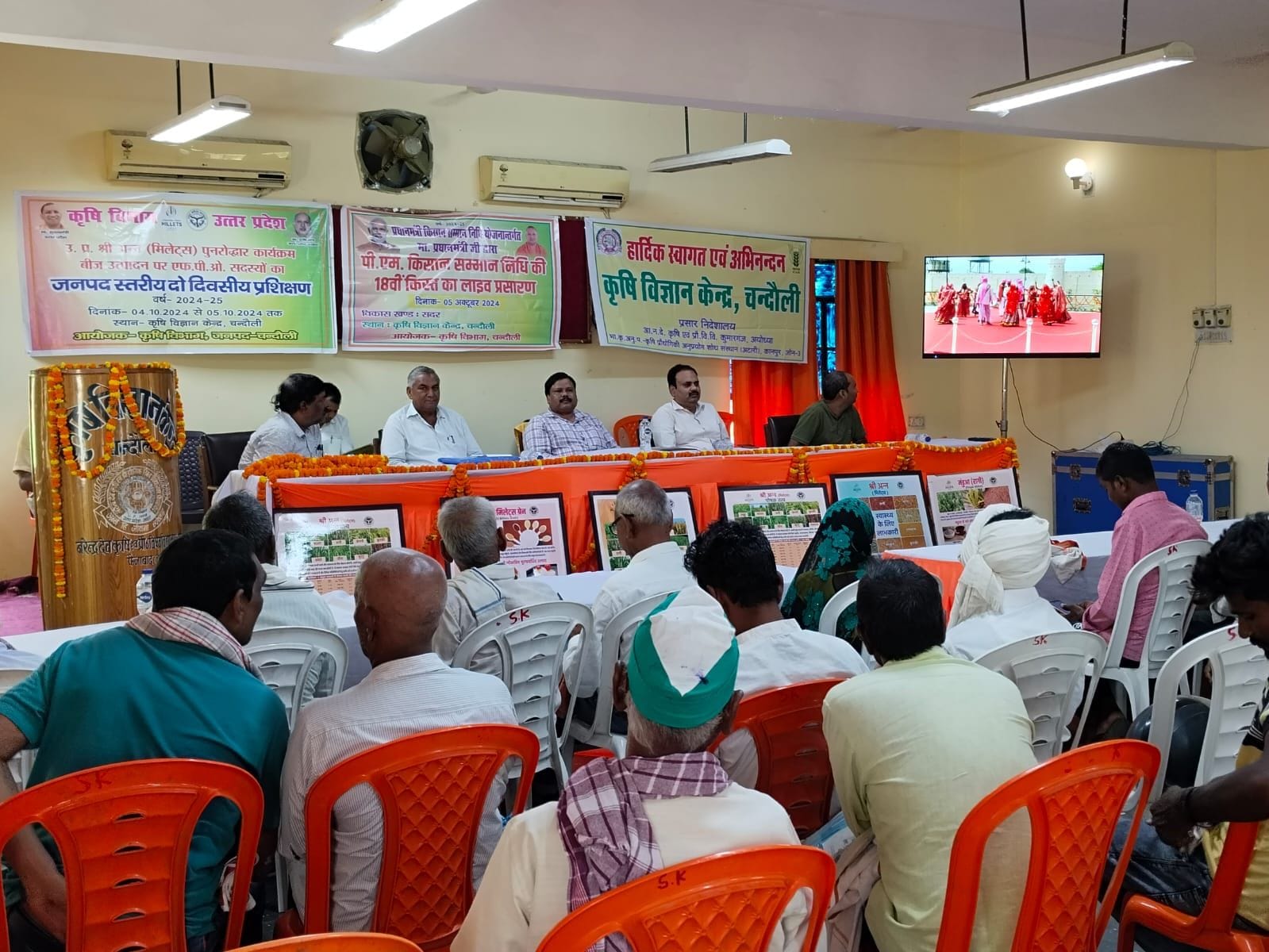 बीज, खाद व अन्य कृषि निवेश उपलब्ध हो जायेगा और आपकी फसलों की बुवाई भी समय से हो जायेगी। जिससे अच्छा उत्पादन प्राप्त होने के साथ ही आपकी आय में वृद्धि होगी। इसके साथ-साथ जनपद में समस्त किसान भाईयों की तरफ से 18वी किस्त 41 करोड़ 30 लाख रूपये किसानों के खाते में सीधे प्राप्त होने के अवसर पर प्रधानमंत्री को धन्यवाद ज्ञापित किया गया। इस कार्यक्रम का लाइव प्रसारण कृषि विज्ञान केन्द्र चन्दौली एवं जनपद के समस्त विकास खण्डों में किया गया, जिसमें बड़ी संख्या में कृषकों द्वारा प्रतिभाग किया गया। उप कृषि निदेशक द्वारा कृषि विभाग के अन्तर्गत संचालित कृषक हितार्थ विभिन्न योजनाओं की विस्तारपूर्वक जानकारी दी गयी। इस अवसर पर कृषि विज्ञान केन्द्र चन्दौली के अध्यक्ष / वरिष्ठ वैज्ञानिक, विभिन्न एफ०पी०ओ० के निदेशक एवं अन्य प्रगतिशील कृषक उपस्थित रहें।