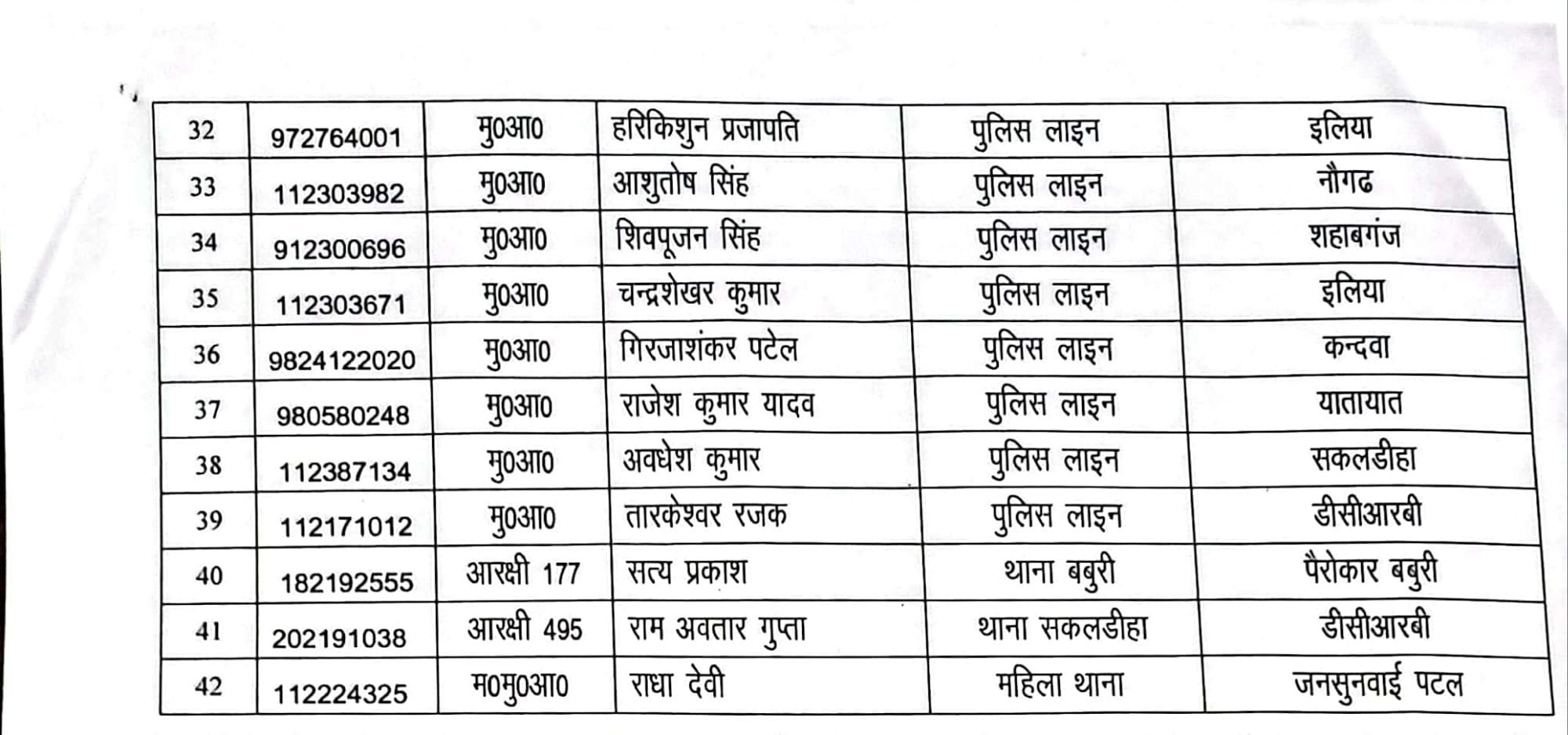यंगेस्ट पुलिस अधीक्षक का तबादला एक्सप्रेस अभी भी है जारी, 42 मुख्य आरक्षी/ आरक्षीयो का किया गया स्थानांतरण
